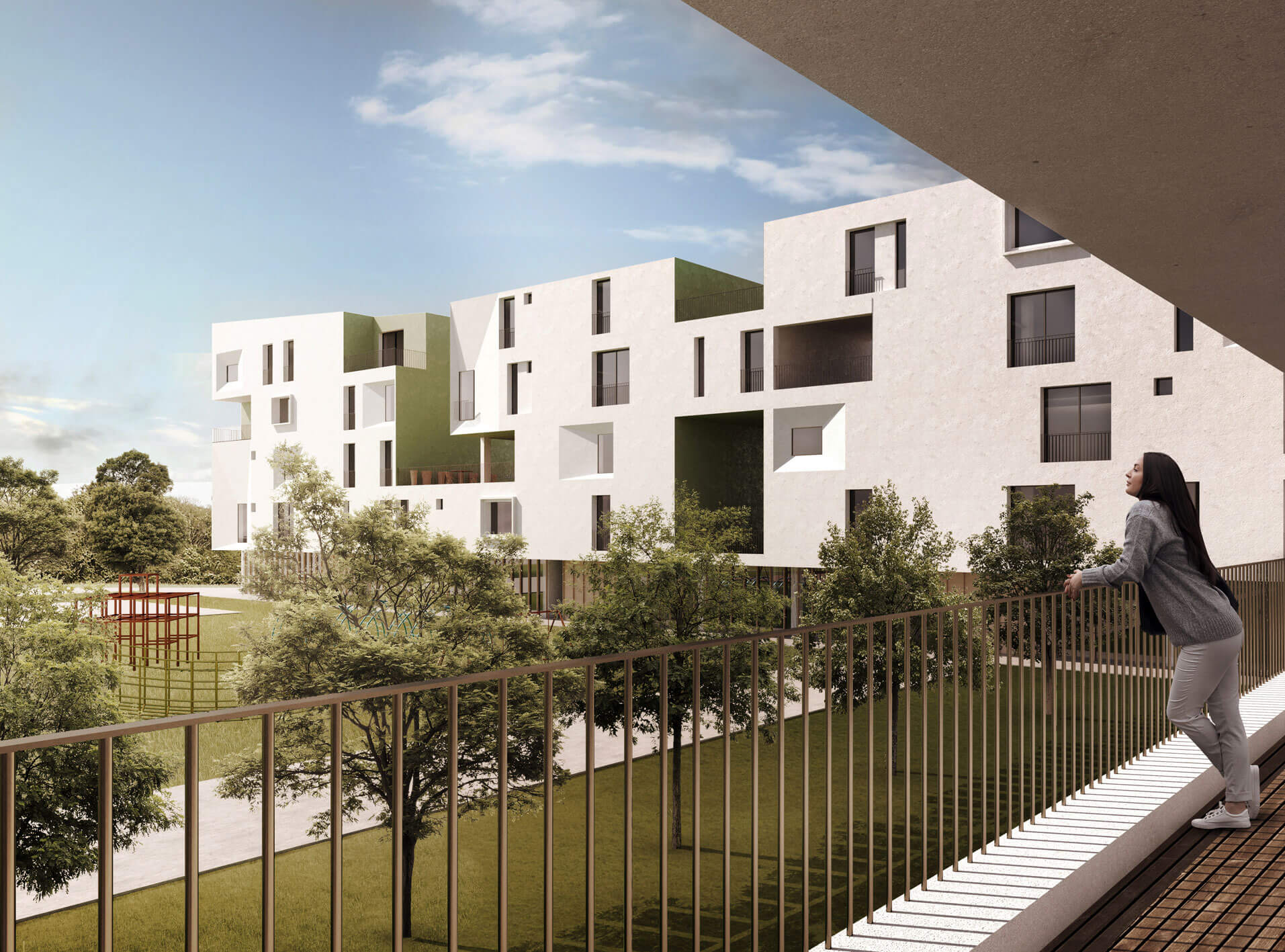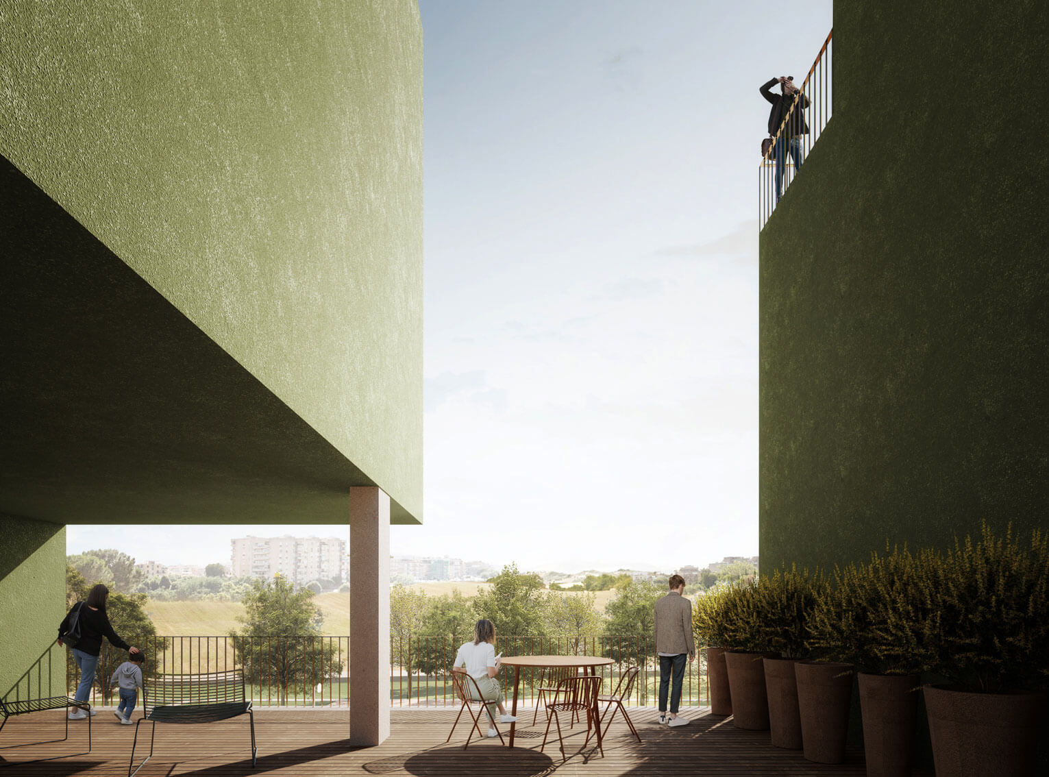 The plan is to build two structures with a large public green courtyard inside, along with several complementary interventions for the neighborhood, including a bicycle path and pedestrian connections to neighborhood parks and facilities. The ground floor is intended for public utilities run by cultural or nonprofit associations, a workshop and youth center with coworking area, as well as multipurpose spaces with a cultural vocation for exhibitions, screenings and performances. All accommodations have a different design in terms of typological and distributive characters and their layout is always different for each level to better meet the different and multiple needs of different future users, they all have terraces, double facing to enjoy effective cross-ventilation.