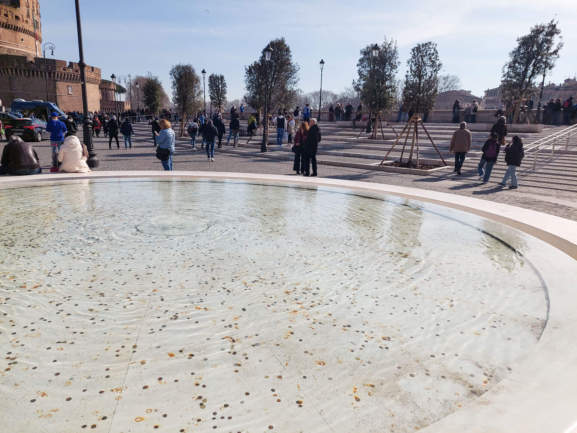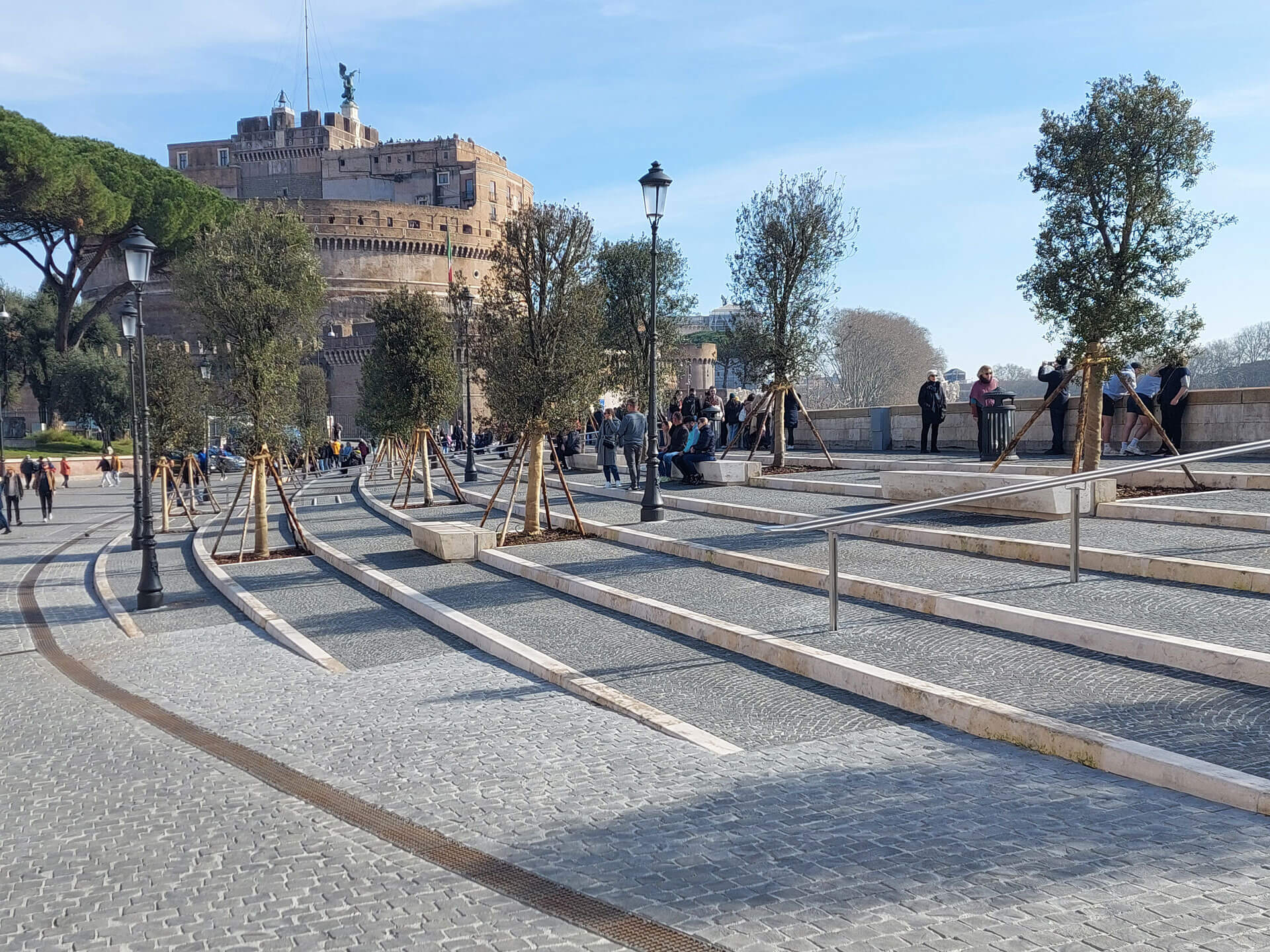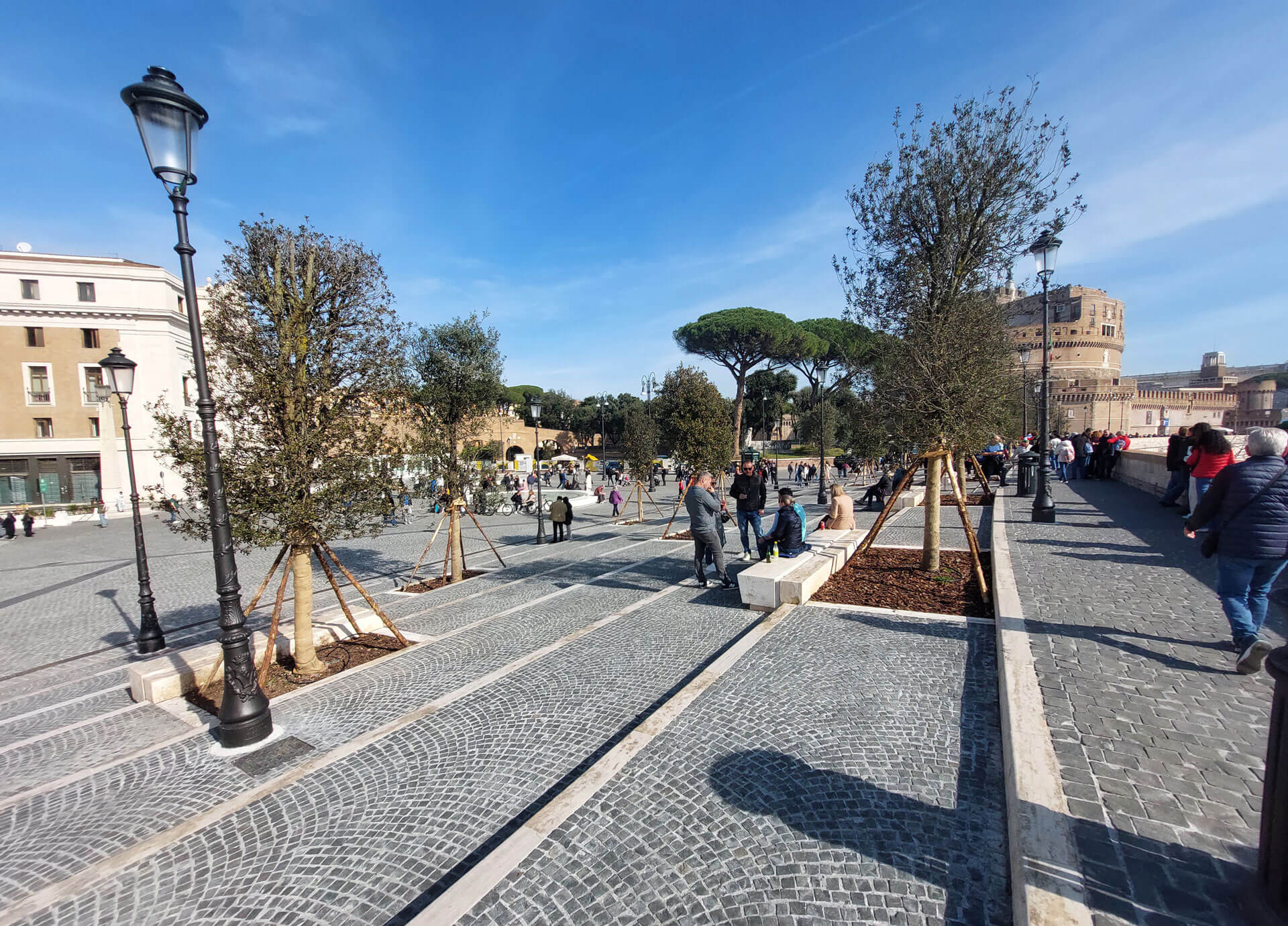 L’intervento, realizzato nell’ambito delle opere per il Giubileo 2025, ha realizzato la pedonalizzazione della piazza e di creare un corridoio pedonale che collega Castel Sant’Angelo con San Pietro. I lavori di creazione di un tunnel sotterraneo per le auto hanno consentito di ripensare uno spazio frequentato da turisti e cittadini. Grande attenzione è stata posta alla creazione di uno spazio il più possibile accogliente, con panchine e eliminazione delle barriere architettoniche, frequentabile anche durante i mesi estivi. Al posto dell’asfalto è stata realizzata una pavimentazione in sanpietrini, sono stati piantati alberi e realizzate due grandi fontane circolari. Inoltre, nei prospicienti giardini della Mole Adriana sono in corso interventi di riqualificazione che prevedono la messa a dimora di 88 alberi.